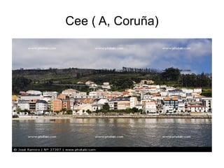 El documento lista cinco localidades de Galicia: Cee (A Coruña), Castro Caldelas (Ourense), Pontevedra, Burela (Lugo) y Ponte Sampaio (Pontevedra).