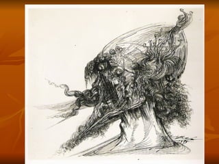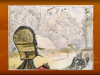 El documento resume representaciones plásticas de Don Quijote por varios artistas a través de los siglos, incluyendo ilustraciones de Hogarth y Doré en el siglo XVIII que estilizaron los personajes, y obras de Daumier, Picasso, Dalí, Ponç, Matta y Saura en los siglos XIX y XX que continuaron dramatizando y reinterpretando escenas del Quijote.
