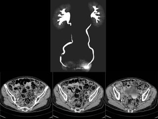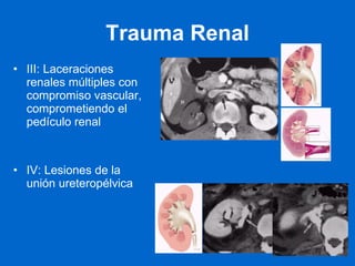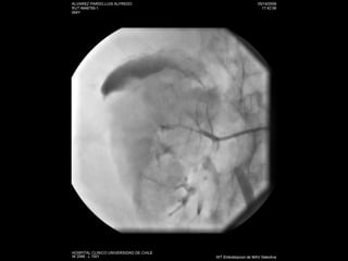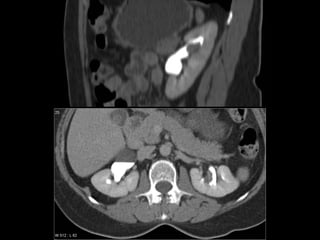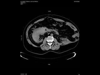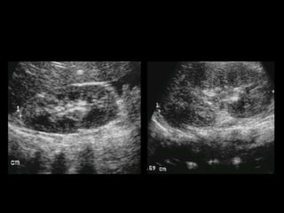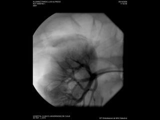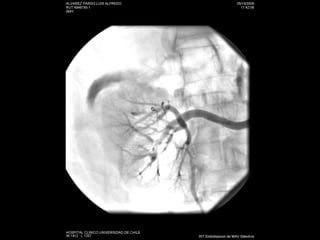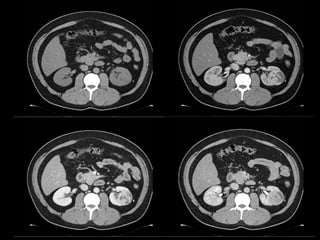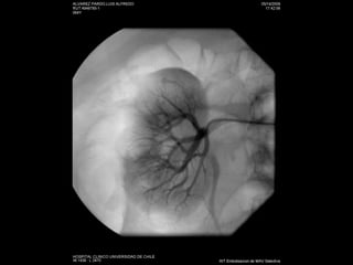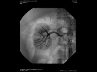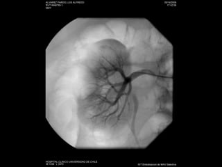 Este documento resume los principales métodos de imagen utilizados en nefrología, incluyendo ecografía, tomografía computarizada, resonancia magnética y angiografía. Describe las técnicas de elección para diagnosticar varias patologías como cólico renal, hematuria, tumores renales, infecciones del tracto urinario, trauma renal e hipertensión arterial secundaria. También cubre procedimientos intervencionales como nefrostomías, ablación por radiofrecuencia y embolización de lesiones vasculares.