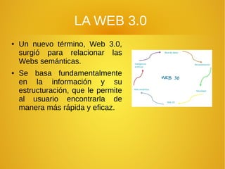 La Web 3.0 se basa en la estructuración y organización de la información para permitir que los usuarios encuentren datos de manera más rápida y efectiva. Representa la evolución de la interacción en la red a través de enfoques como las tecnologías semánticas, la visión 3D, y el uso de la red como base de datos accesible por múltiples aplicaciones más allá de los navegadores.