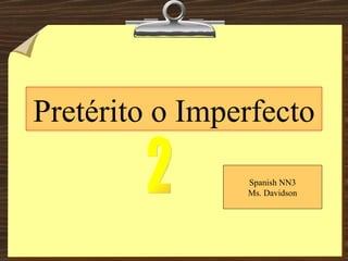 Este documento presenta varias oraciones en español con verbos en pretérito o imperfecto para que el estudiante identifique cuál es el tiempo verbal correcto según el contexto. Se analizan situaciones pasadas habituales, puntuales y continuadas usando diferentes verbos como limpiar, ir al cine, jugar béisbol, trabajar y comprar.