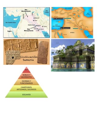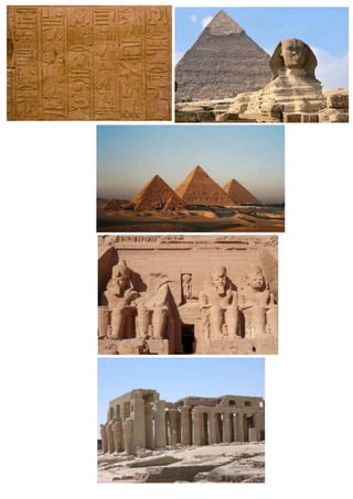 El documento aborda aspectos clave de los antiguos imperios, incluyendo el imperio medio, nuevo y antiguo, así como su influencia en la religión, el arte, la arquitectura y el testamento. Se mencionan ejemplos específicos como la escultura y la pintura, y se hace referencia a lugares de relevancia como Samaria y Galilea, así como al Taj Mahal. El enfoque abarca la evolución del alfabeto y las diversas expresiones artísticas a lo largo de la historia.