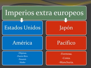 Japón se expandió por el Pacífico a fines del siglo XIX y principios del siglo XX, adquiriendo Formosa, Corea y Manchuria. Esto se debió a su necesidad de recursos para su creciente población e industria, así como a su deseo de defenderse de China y Rusia. Derrotó a China en la guerra sino-japonesa de 1894-1895 y a Rusia en la guerra ruso-japonesa de 1904-1905, estableciendo su dominio en Corea y Manchuria.
