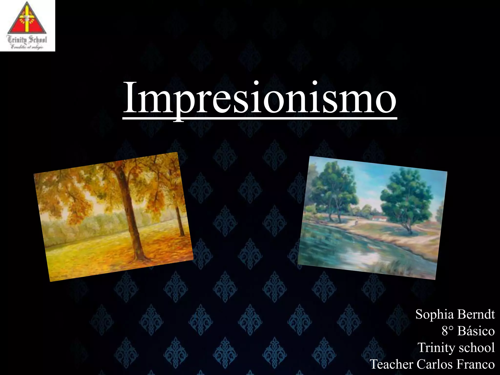 El documento describe las características del movimiento artístico del impresionismo. Señala que los impresionistas se enfocaron en capturar la luz y efectos de los paisajes, sin quitar atención a la vida cotidiana. Sus técnicas incluyeron pinceladas rápidas y uso del color sin negro puro. Artistas clave fueron Monet, Manet y Sisley, quienes se centraron en temas como paisajes, usando la luz y color para reflejar momentos agradables.