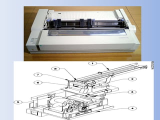 Este documento describe los diferentes tipos de impresoras, incluyendo impresoras de impacto, de chorro de tinta, láser, térmicas, de sublimación, plotters e impresoras 3D. Explica cómo funcionan las impresoras de chorro de tinta mediante el efecto piezoeléctrico y cómo se mide la velocidad y calidad de una impresora.