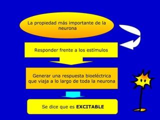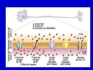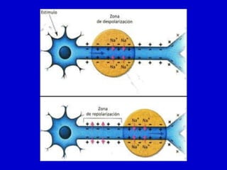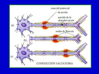 El documento resume los conceptos fundamentales del impulso nervioso. Explica que las neuronas generan y transmiten señales eléctricas llamadas potenciales de acción a lo largo de su membrana en respuesta a estímulos. Estas señales ocurren debido a cambios en la permeabilidad de la membrana a iones sodio y potasio que alteran su potencial eléctrico. El potencial de acción se propaga a lo largo del axón gracias a factores como el diámetro del axón, la temperatura y la presencia