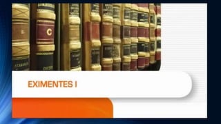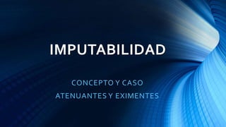 El documento trata sobre la imputabilidad, atenuantes y eximentes de responsabilidad penal. Define la imputabilidad como la capacidad de comprender que las acciones pueden lesionar a otros y actuar de acuerdo con ese entendimiento. Las atenuantes disminuyen pero no anulan la responsabilidad criminal. Las eximentes liberan de toda responsabilidad, como actuar bajo miedo insuperable. Luego presenta el caso de Dany Saldaña Cerna, acusado de asesinar a Yanira Sánchez Abanto, y analiza posibles atenuantes como el