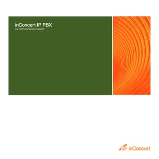 El documento describe el sistema de telefonía IP inConcert IP PBX. Ofrece funcionalidades avanzadas de telefonía para optimizar las comunicaciones corporativas a bajo costo. Puede implementarse en una única ubicación o en instalaciones distribuidas, integrando todas las sucursales y permitiendo llamadas internas y locales sin costo. Su instalación y administración son sencillas.