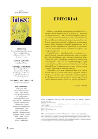 El documento es una recopilación de artículos escritos por estudiantes de comunicación de la UNCP, donde abordan temas relevantes para su formación. Se destaca la figura del pintor peruano Fernando de Szyszlo, su evolución artística y su impacto en el arte contemporáneo, así como también se menciona al humorista gráfico Sofocleto y su legado. El contenido refleja la diversidad de intereses de los estudiantes y busca fomentar la pasión por la escritura entre los lectores.