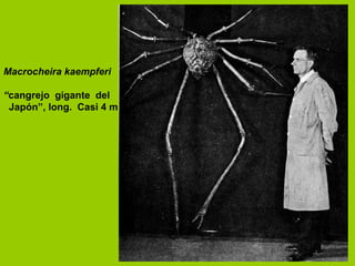 Este documento presenta información sobre el orden Decapoda, incluyendo detalles sobre la taxonomía, morfología, desarrollo y conservación de varias especies. Describe las subórdenes, infraórdenes y familias dentro del orden, con ejemplos de especies representativas. También discute la importancia económica de los decápodos y su significado para los humanos, así como opiniones contradictorias sobre su filogenia.
