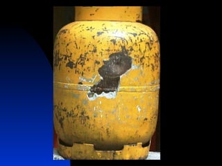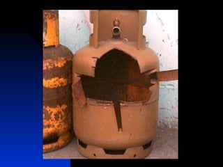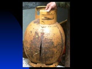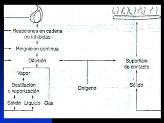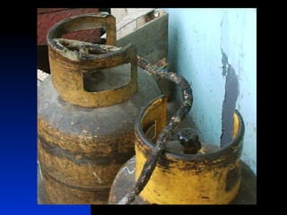 El documento proporciona información sobre incendios y explosiones. Explica las características del fuego, los tipos de combustibles y fuegos, y los factores necesarios para que ocurra un incendio. También describe los diferentes tipos de explosiones, incluidas las físicas y químicas, y los riesgos asociados con gases como el GNL y el GLP. El objetivo es crear conciencia sobre cómo prevenir incendios y explosiones.