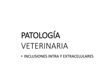 Este documento describe diferentes tipos de inclusiones intra y extracelulares que pueden ocurrir en el cuerpo. Explica depósitos como lípidos, glucógeno, proteínas, pigmentos y calcio que se pueden acumular dentro o fuera de las células debido a alteraciones metabólicas, infecciones u otros procesos patológicos. También describe las causas, apariencia microscópica y macroscópica, y significado clínico de estas inclusiones anormales.