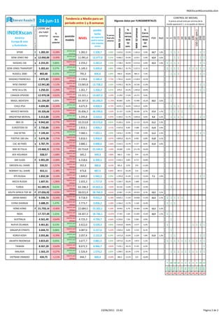 Este documento proporciona canales de máximos y mínimos para varios índices bursátiles globales con el fin de identificar posibles puntos de entrada y salida para operaciones de trading de corto plazo. Además, clasifica la tendencia de cada índice como alcista, bajista o neutra dependiendo de su posición relativa a los canales. La mayoría de los índices se consideran neutrales o con una tendencia levemente alcista o bajista.