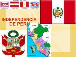 El documento resume los principales hitos del proceso independentista del Perú desde 1811 hasta la declaración de independencia en 1821. Detalla las revueltas iniciales en el sur del Perú y el Alto Perú, las campañas de Manuel Belgrano y las expediciones argentinas, así como el papel desempeñado por José de San Martín que desembarcó en 1820 y declaró la independencia el 28 de julio de 1821. También describe brevemente la intervención de Simón Bolívar desde 1823 para derrotar a los realistas y asegurar la independencia del Perú