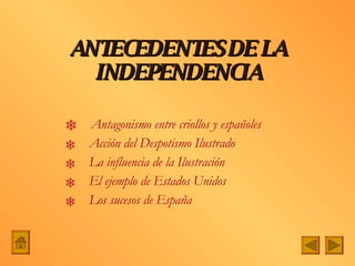El documento resume las principales etapas de la independencia de Chile, incluyendo los antecedentes, la Patria Vieja, la Reconquista, y la Patria Nueva. Detalla los principales sucesos políticos y militares, como la formación de la primera junta de gobierno, las campañas militares de 1813 y 1814, la batalla decisiva de Maipú en 1818, y el gobierno de Bernardo O'Higgins.