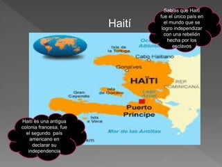 Haití fue la primera nación latinoamericana en independizarse tras una exitosa rebelión de esclavos contra Francia entre 1791 y 1804. Liderada por figuras como Toussaint Louverture y Jean-Jacques Dessalines, la revolución haitiana abolió la esclavitud y estableció la primera república negra del mundo. Sin embargo, las potencias extranjeras no reconocieron de inmediato la independencia de Haití y le impusieron bloqueos económicos.
