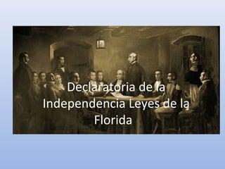 Este documento resume las leyes clave de la declaración de independencia de Uruguay en 1825. La Ley de Independencia declara la independencia de Portugal, Brasil y cualquier otro país. La Ley de Unión une la Provincia Oriental a las demás provincias de Sudamérica por la voluntad de su pueblo. La Ley de Pabellón establece el uso temporal de la bandera celeste, blanca y roja hasta adoptar la bandera definitiva de las Provincias Unidas.