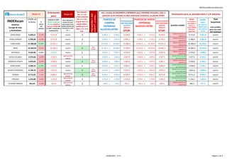 Este documento proporciona un resumen de la orientación (alcista, bajista o neutral) de varios índices bursátiles importantes a nivel mundial, así como niveles de compra y venta potenciales para cada índice. Además, incluye comentarios sobre posibles impulsos alcistas o bajistas dependiendo de si cada índice supera ciertos niveles clave.