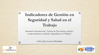 Este documento presenta información sobre indicadores de gestión en seguridad y salud en el trabajo. Explica que los indicadores permiten evaluar la gestión, identificar oportunidades de mejora, y apoyar en el diagnóstico y formulación de políticas para prevenir lesiones y enfermedades. Se describen diferentes tipos de indicadores, incluyendo los que evalúan la estructura, procesos y resultados de un sistema de gestión. Además, ofrece ejemplos concretos de cómo elaborar e interpretar indicadores para medir aspectos como la accidentalidad laboral