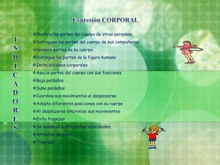 El documento presenta los resultados de la evaluación de aprendizajes de tres bachilleres en educación preescolar. La evaluación cubre diversas áreas como coordinación motriz gruesa y fina, expresión y comprensión verbal, imitación y juegos de roles. En total se evalúan más de 100 indicadores de desempeño agrupados en las distintas áreas.
