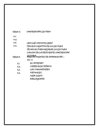 El documento presenta una lista de 15 organizadores gráficos o herramientas visuales para organizar información como diagramas de Venn, mapas conceptuales, esquemas de llaves, mapas mentales y telarañas. También incluye una introducción sobre técnicas de estudio como tomar apuntes, resúmenes y elaboración de proyectos.