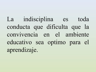 Este documento presenta estrategias para prevenir y manejar la indisciplina en el aula según el Sistema Preventivo de Don Bosco. Propone aplicar la razón, religión y amor para resolver situaciones de indisciplina. También identifica factores que generan indisciplina como problemas en el hogar o escolares, y sugiere comunicación, normas claras y participación de estudiantes como formas de prevención.
