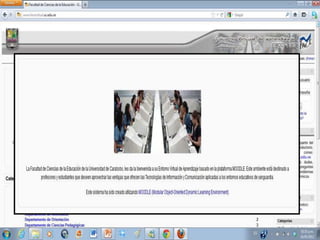 El documento explica cómo navegar y encontrar cursos en Moodle, incluyendo buscarlos en la sección "Mis cursos" o hacer clic en un curso específico. Detalla las partes principales de un curso en Moodle, como unidades temáticas, contenido, videos, documentos y evaluaciones. También describe los foros de discusión, incluyendo la consigna inicial, respuestas anidadas y su función de sustituir el aula convencional para interacción colaborativa.