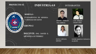La industria 4.0 consiste en la digitalización de la industria y los servicios relacionados con las empresas. Tiene varias ventajas como optimizar la calidad, reducir costos y tiempos de producción, y aumentar la competitividad y respuesta al mercado. También tiene desventajas como costos iniciales altos y dependencia en la tecnología. La industria 4.0 es importante porque afecta a todos los niveles económicos y organizacionales. Busca reorganizar las cadenas de valor industrial mediante fábricas inteligentes donde