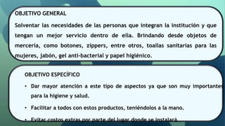 Industrias Bromf es una empresa que genera máquinas expendedoras con el objetivo de solventar las necesidades e implementar la higiene dentro de las instituciones donde se instalen. La empresa busca ser reconocida por su prestigio y compromiso para fomentar la higiene, cubrir las necesidades de los clientes y evitar gastos extras a través de máquinas expendedoras de productos de higiene como jabón, gel antibacterial y papel higiénico.