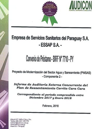 Informe de Auditoría Externa Concurrente del Plan de Reasentamiento, periodo diciembre de 2017-enero de 2018.