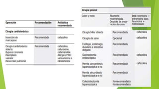 1) El documento describe la historia, epidemiología, tipos, factores de riesgo y prevención de las infecciones del sitio quirúrgico. 2) Las infecciones del sitio quirúrgico pueden ser superficiales, profundas u órgano-cavitarias dependiendo de los tejidos afectados. 3) Los factores de riesgo incluyen tabaquismo, diabetes e índices de riesgo como el ASA, y la prevención involucra medidas como asepsia quirúrgica, descontaminación del sitio, pro
