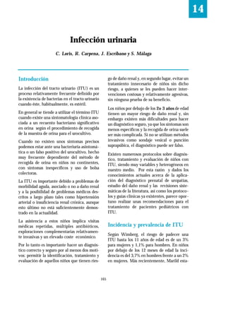 La infección del tracto urinario (ITU) es un proceso relativamente frecuente definido por la presencia de bacterias en el tracto urinario. Los niños menores de 2-3 años tienen un mayor riesgo de daño renal por una ITU y requieren un tratamiento, mientras que en niños mayores el objetivo es evitar tratamientos innecesarios sin pruebas de su beneficio. El documento analiza la infección urinaria en niños y los factores de riesgo asociados con daños renales.