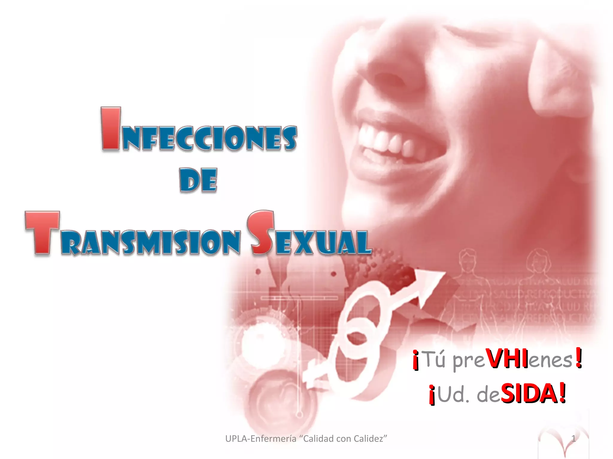 El documento presenta información sobre las infecciones de transmisión sexual (ITS) en el Perú. Según datos de 2000, el 23% de mujeres sexualmente activas habían presentado secreción genital y cerca del 1% tuvo otra ITS. Las ITS son la séptima causa de enfermedad identificada en Junín en 2007. La mayoría de los casos se presentan en ciudades de la costa y selva peruanas. Más de 10,000 peruanos infectados con VIH han recibido tratamiento desde 2004. El 80% de los casos de VIH son hombres y
