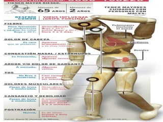¿QUÉ ES LA INFLUENZA?Es una enfermedad respiratoria causada por un virus llamado virus de la influenzaEl virus se subclasifica según las proteínas de su superficie:       -Hemaglutinina(H)       -Neuroaminidasa(N)