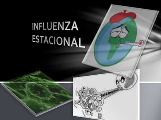 La influenza estacional es causada por virus de la influenza que infectan el tracto respiratorio superior e inferior, pudiendo causar enfermedad grave o complicaciones que ponen en riesgo la vida. Se transmite fácilmente de persona a persona a través de gotitas respiratorias. Los síntomas incluyen fiebre, tos, dolor de garganta y cuerpo. El tratamiento se enfoca en aliviar los síntomas, y en algunos casos se usan antivirales.