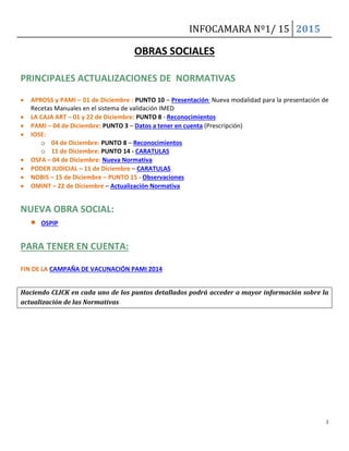 La Cámara de Farmacias de Córdoba está organizando reuniones informativas para ayudar a sus socios con el proceso de presentación de obras sociales, con excelentes resultados en las ciudades visitadas. Se han actualizado normativas de diversas obras sociales y se ha lanzado el Centro Integral de Estudios Farmacéuticos para capacitar a profesionales del sector. Además, se destaca el trabajo de la ONG 'Una Gota de Salud', que brinda asistencia a comunidades remotas y ha sido reconocida por su labor solidaria.