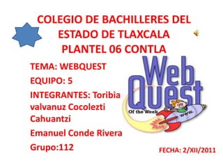 Este documento presenta las diferentes secciones de una WebQuest educativa, incluyendo la introducción, tarea, proceso, recursos, evaluación, conclusión y guía didáctica. Explica brevemente el propósito y contenido de cada sección para orientar a los estudiantes en la actividad de aprendizaje y proporcionar información al maestro.