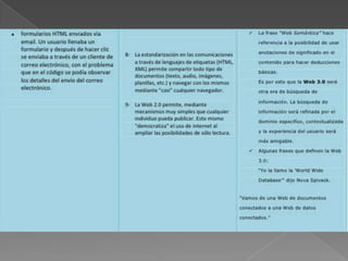 La tecnología evoluciona constantemente para realizar actividades de una manera más sencilla y práctica. A medida que pase el tiempo, será importante contar con medios tecnológicos para mejorar la evolución humana. Se debe aplicar los conocimientos adquiridos sobre los diferentes tipos de web de forma adecuada y entender la tecnología a medida que evoluciona.