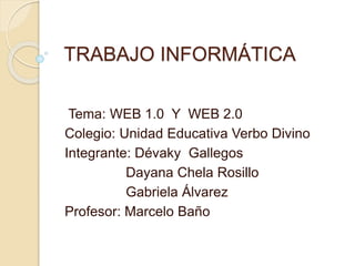 Este documento presenta preguntas de evaluación sobre las diferencias entre la Web 1.0 y la Web 2.0, y los usos educativos de las herramientas Web 2.0. Las herramientas Web 2.0 facilitan la máxima interacción entre los usuarios y el aprendizaje colaborativo a través de blogs, wikis, videos tutoriales y podcasts. Una wiki se define como un sitio web cuyas páginas pueden ser editadas por múltiples voluntarios a través del navegador web.