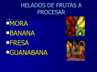 Este documento presenta un análisis de viabilidad para un negocio de helados artesanales de frutas en la ciudad. Se define el problema, la misión y visión de la empresa propuesta. Se analizan factores como costos, oportunidades, amenazas y debilidades. Finalmente, se presenta una matriz FODA y se agradece la atención del lector.