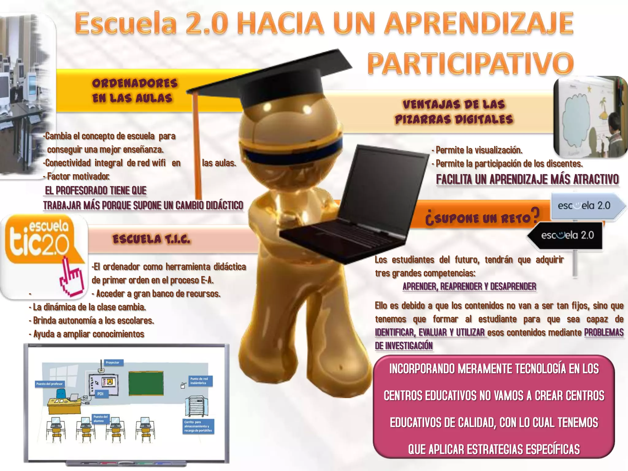 El documento describe las ventajas de incorporar ordenadores y pizarras digitales en las aulas escolares. Esto permite cambiar el concepto de enseñanza para hacerla más atractiva e interactiva, brindando acceso a recursos en línea y autonomía a los estudiantes. Sin embargo, los profesores deben adaptarse a este cambio didáctico y aplicar estrategias específicas, ya que la mera incorporación de tecnología no garantiza una mejor educación.
