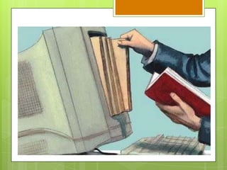 Este documento describe diferentes fuentes de información digital, incluyendo bibliotecas virtuales, bancos de información y bibliografías. Explica que las bibliotecas virtuales y bancos de información contienen datos organizados de forma temática provenientes de fuentes confiables, mientras que las bibliografías citan recursos de investigación específicos. También destaca la importancia de saber investigar para obtener información confiable de estas fuentes.