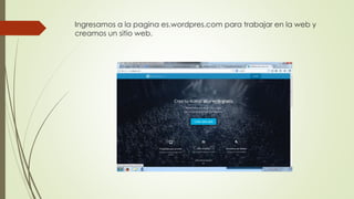 Este documento proporciona instrucciones sobre cómo usar WordPress y SlideShare. Explica que WordPress es una plataforma para crear sitios web y blogs, y cómo crear una cuenta y publicar presentaciones en SlideShare. También describe las diferentes vistas en WordPress como la administración y pública, y cómo editar temas, menús y publicaciones.