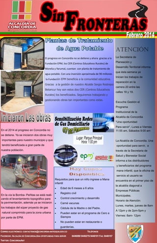 La Fundación EPM invirtió 90 millones de pesos para instalar plantas de tratamiento de agua potable en dos Centros Educativos Rurales en Morelia y Yarumal, beneficiando a la comunidad educativa. Adicionalmente, ya iniciaron obras de reparación vial en Concordia y los trabajos para la pavimentación de la vía La Bomba-Peñitas, incluyendo el levantamiento topográfico.