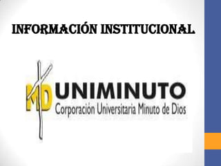 La Universidad Minuto de Dios ofrece educación superior de alta calidad con fácil acceso para formar profesionales altamente competentes y éticamente orientados que contribuyan a construir un país justo, reconciliado y en paz. Su visión incluye vivencias espirituales, programas académicos de alta calidad, amplia cobertura a través de múltiples sedes, y relaciones nacionales e internacionales.