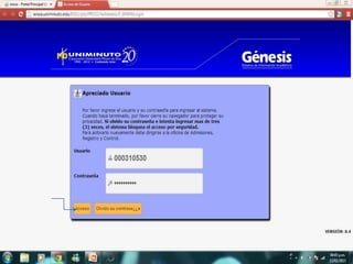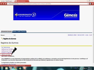 El documento describe el Sistema Universitario UNIMINUTO, el cual ofrece educación superior de alta calidad, accesible y flexible para formar profesionales competentes y líderes de transformación social. El sistema busca construir un país justo y en paz a través de la formación en educación para el desarrollo. El documento también presenta los deberes y derechos de los estudiantes de acuerdo al reglamento estudiantil de UNIMINUTO.