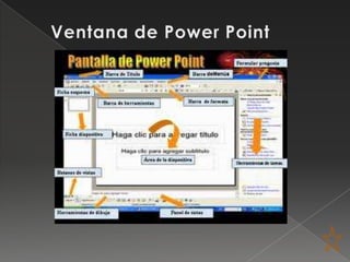 Este documento contiene información sobre presentaciones multimedia en PowerPoint. Explica que una presentación puede incluir texto, imágenes, gráficos, audio y video. También describe cómo aplicar efectos de transición y animación a diapositivas y objetos, así como cómo mover y girar objetos entre diapositivas. Además, detalla los elementos que componen el patrón de diapositivas como estilos de fuente, colores y diseño de fondo.