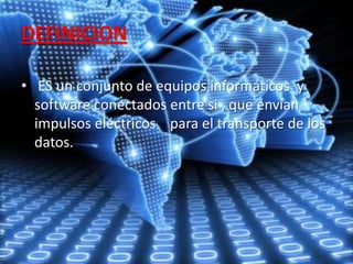 Un documento define una red como un conjunto de equipos informáticos y software conectados que envían impulsos eléctricos para transportar datos. Las redes se componen de hardware, software y protocolos, y pueden tener diferentes topologías como bus, estrella, árbol, malla o doble anillo. Internet es una red descentralizada global que usa protocolos TCP/IP.