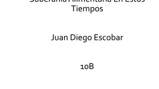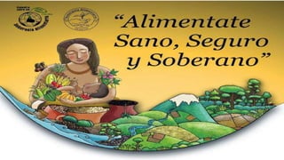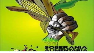 El documento habla sobre la soberanía alimentaria. Fue desarrollado por Vía Campesina como una alternativa a las políticas neoliberales y defiende el derecho de los pueblos a alimentos nutritivos y culturalmente adecuados producidos de forma sostenible. La soberanía alimentaria prioriza las economías locales y los mercados locales y nacionales, otorgando poder a los agricultores familiares y colocando la producción alimentaria sobre la base de la sostenibilidad. Promueve el comercio justo y los derechos de los