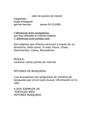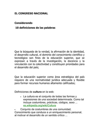 Este documento presenta información sobre varios temas relacionados con Internet y la educación. Incluye definiciones de términos como cultura, educación y estrategias según fuentes en línea. También presenta fichas sobre libros, traductores y blogs. El documento proporciona recursos de referencia sobre estos temas.